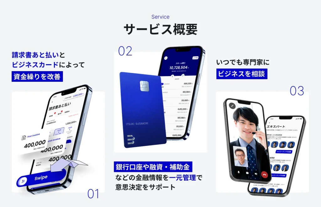 - 請求書あと払い・ビジネスカードなどの日々の支払い機能